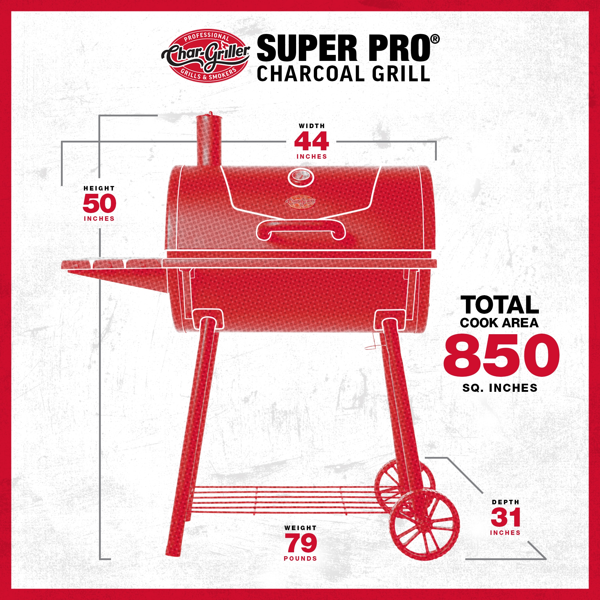 Char-Griller Super Pro Charcoal Grill 30-in W Black Barrel Charcoal Grill