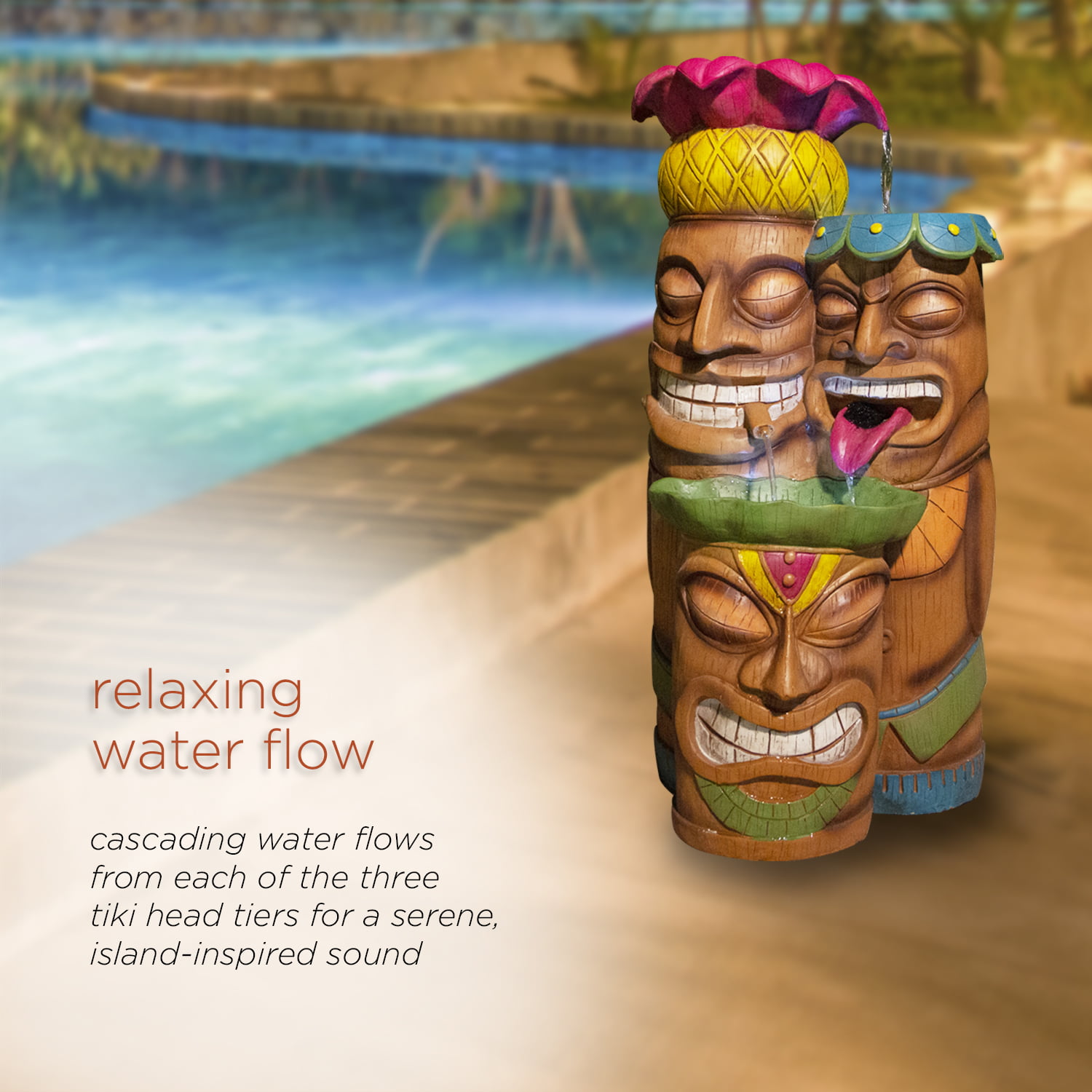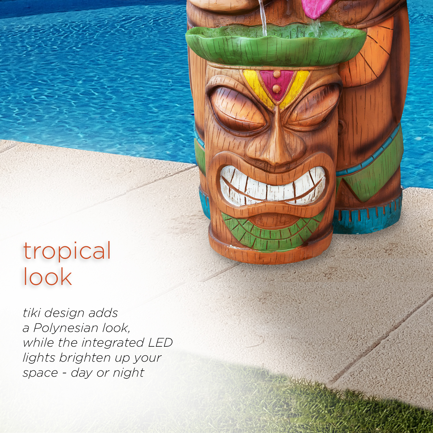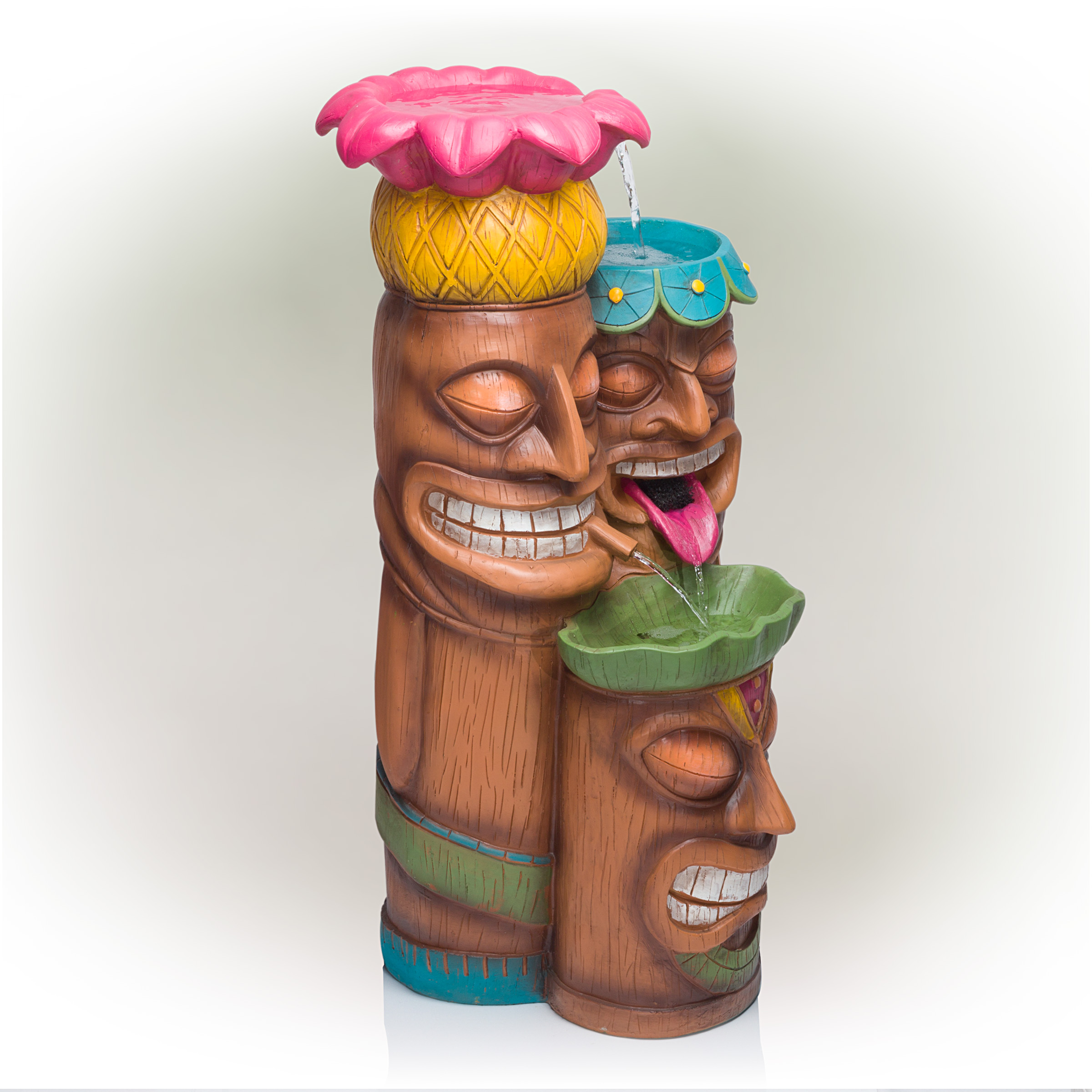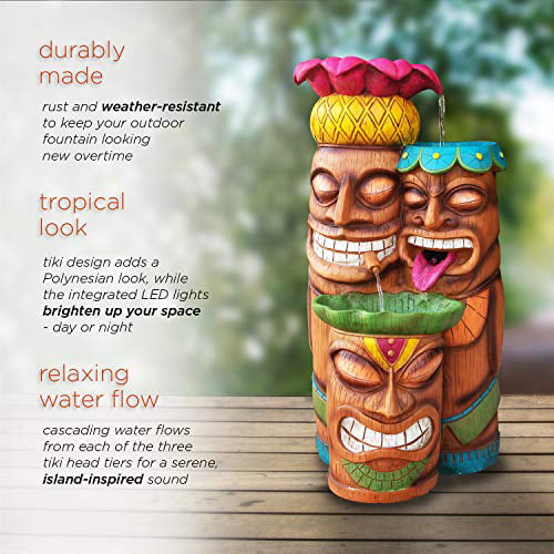 Alpine Outdoor Tiki Head Polyresin Electric Fountain with LED Light, 35 inch Tall
