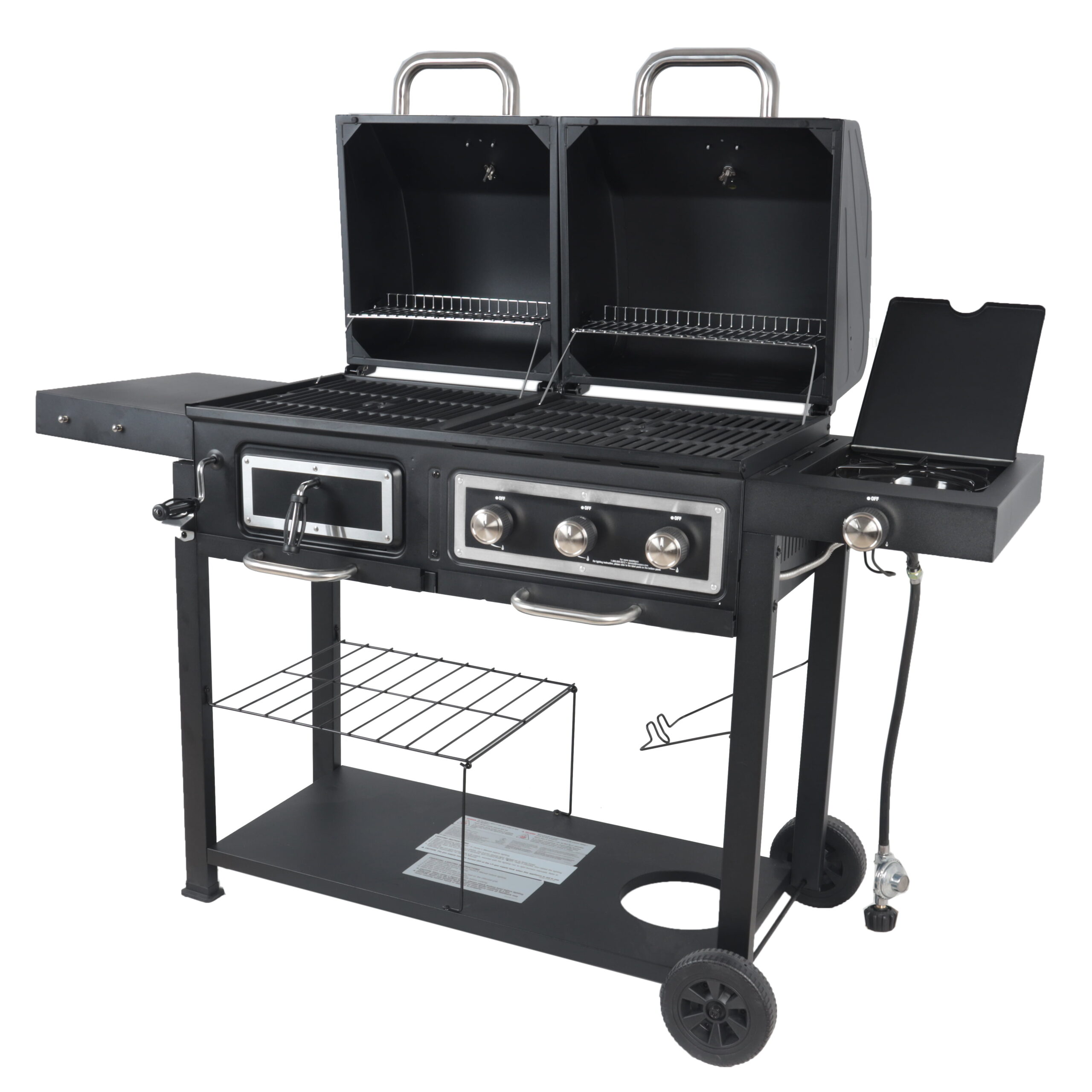 RevoAce Dual Fuel Gas Charcoal Combo Grill, Black with Stainless