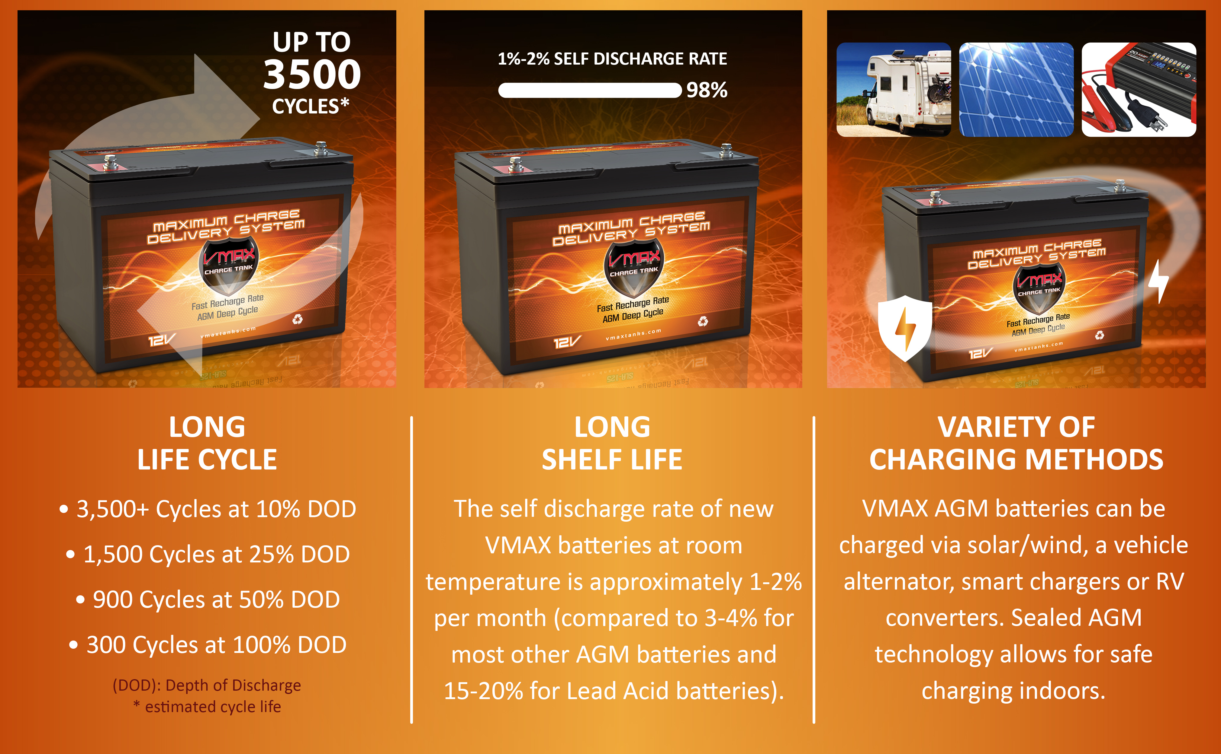 VMAX SLR100 AGM Deep Cycle Battery Replaces AC Delco M27MF 12V group 27 100Ah