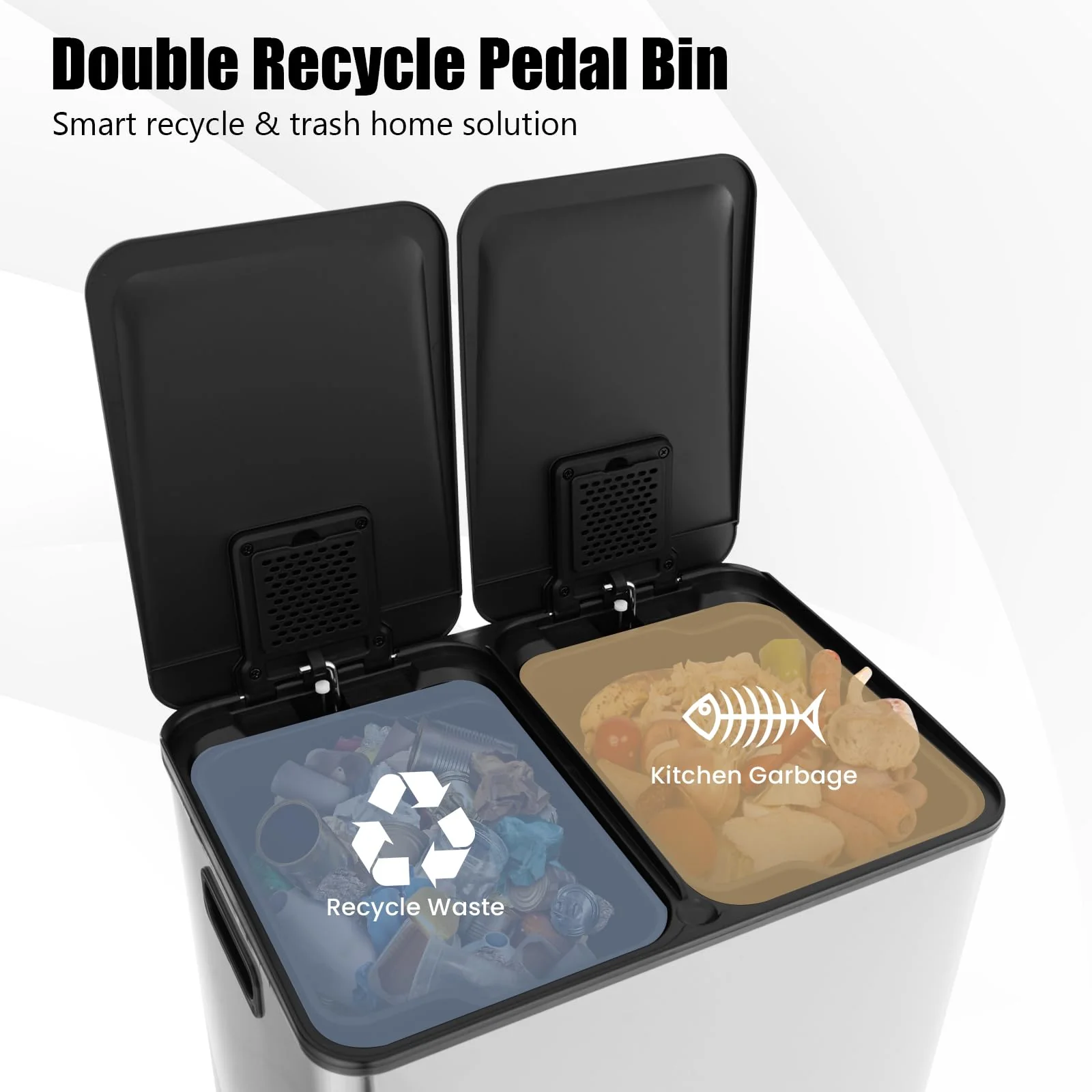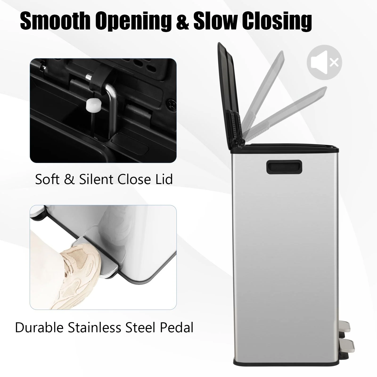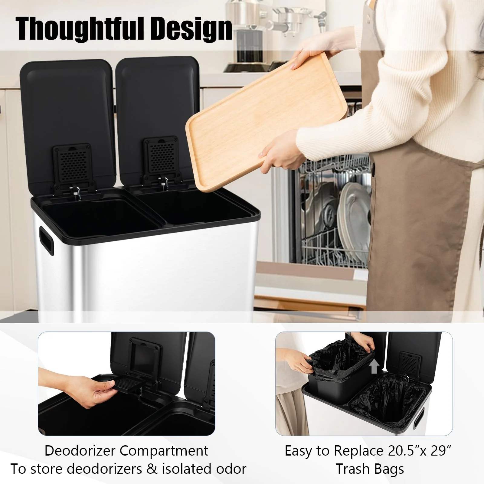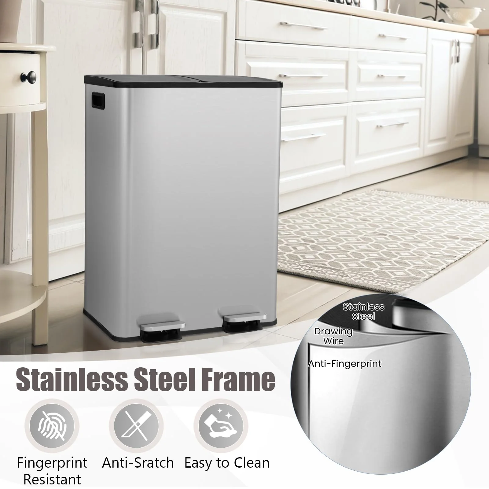 Goplus 16 Gallon/ (2x30L) Stainless Steel Trash Can, Kitchen Trash Bin
