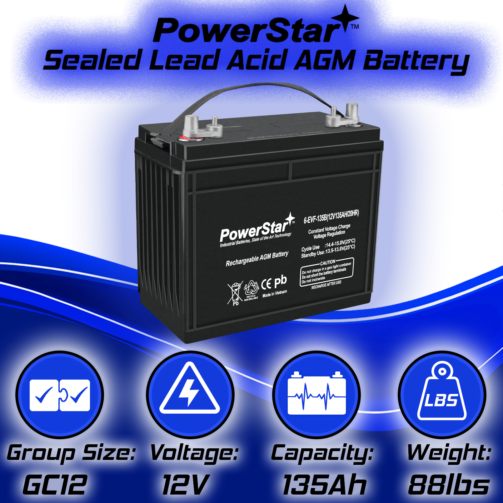 PowerStar Replacement for 12v 12 Volt Golf Cart Battery marine solar club car yamaha rv - 2 Pack