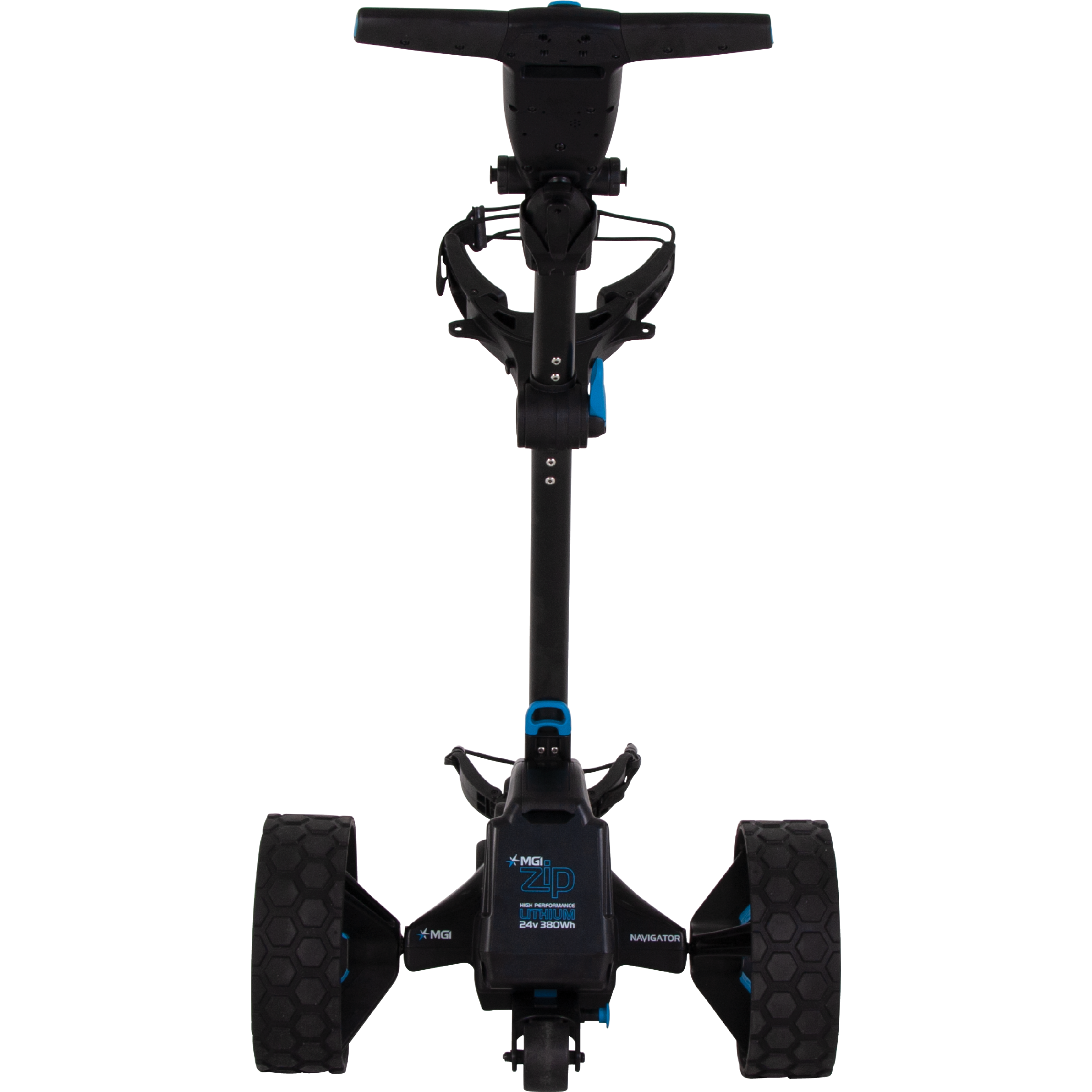 MGI Zip Navigator Electric Golf Push Cart Swivel Caddie with Accessories, Black