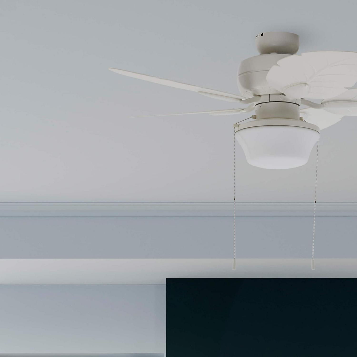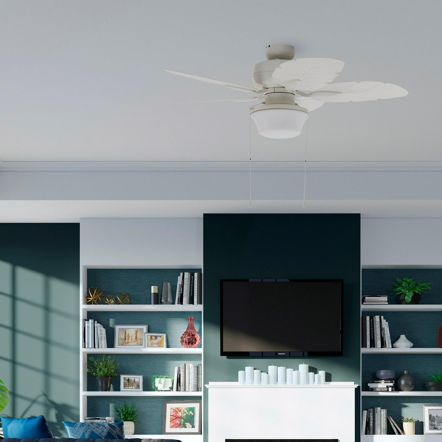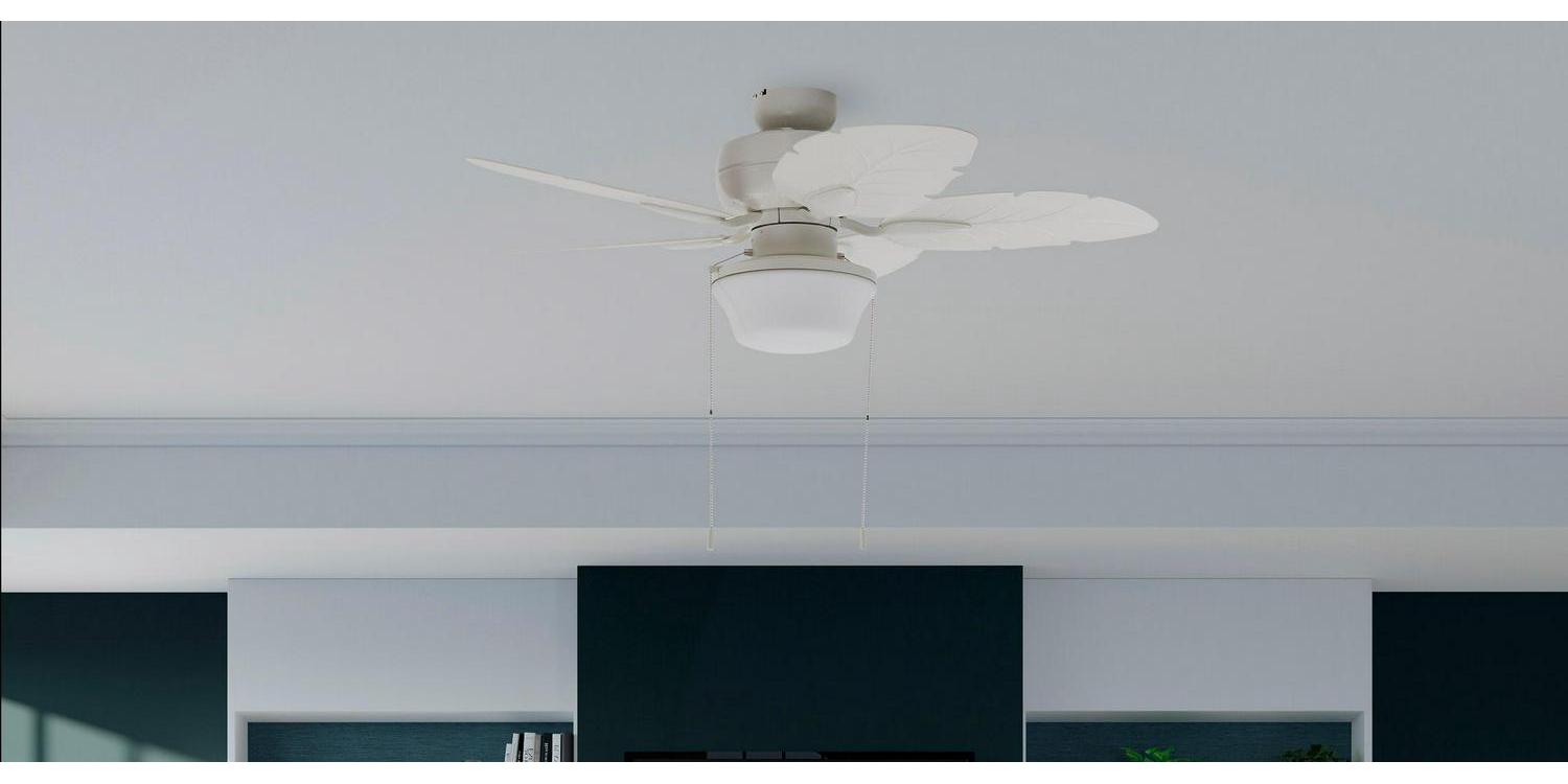 Harbor Breeze Waveport 44-in White Indoor/Outdoor Downrod or Flush Mount Ceiling Fan with Light (5-Blade)