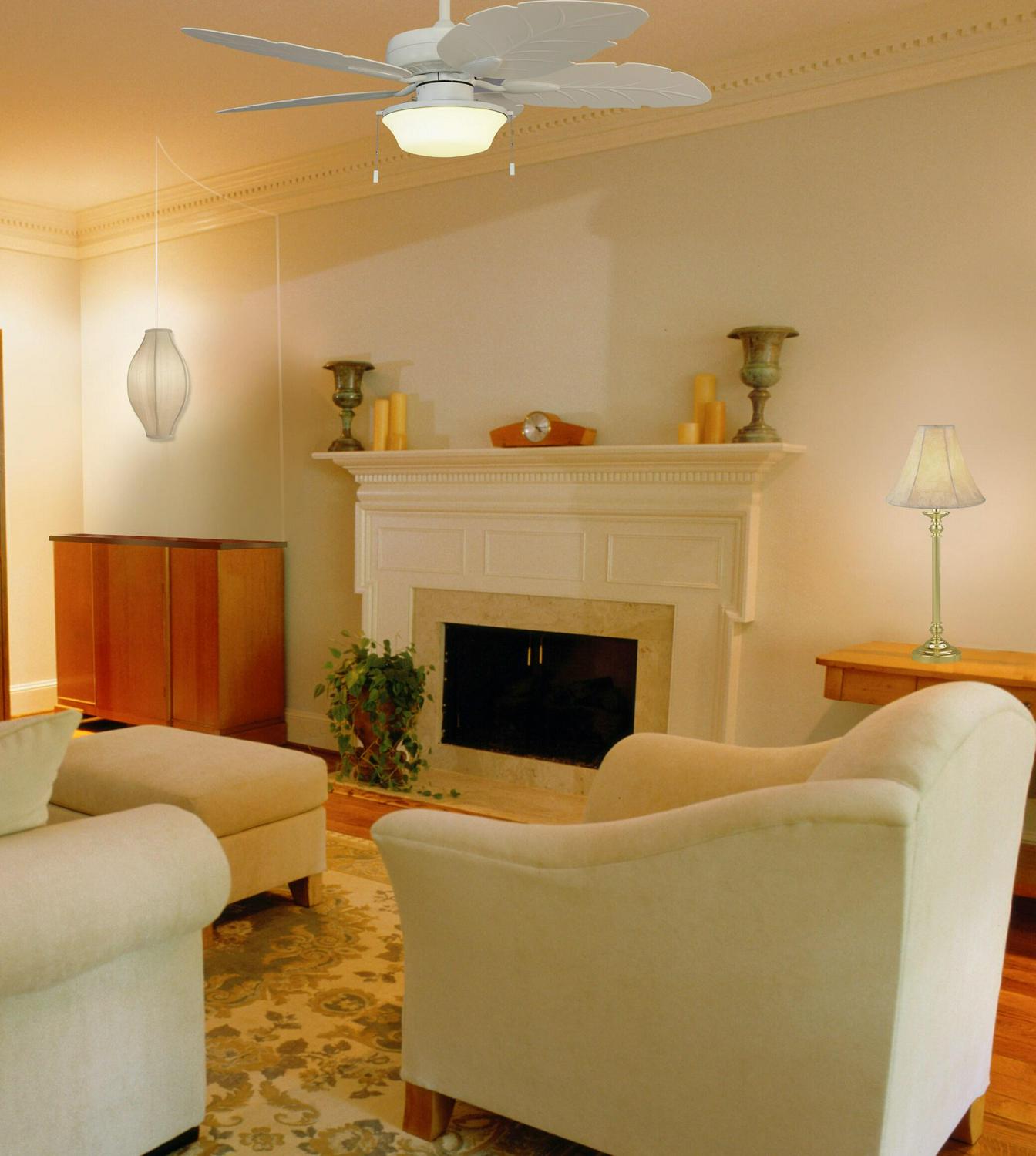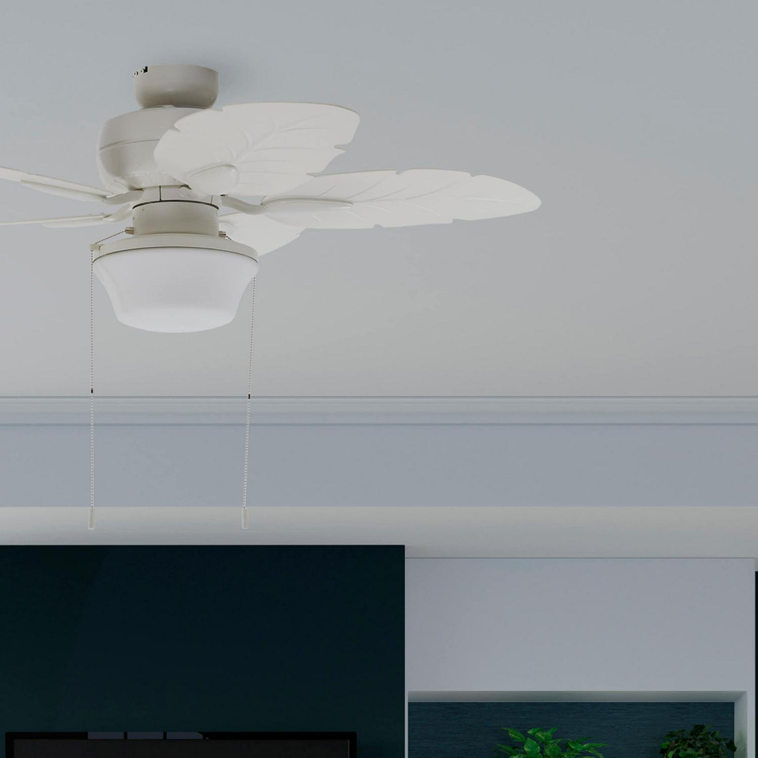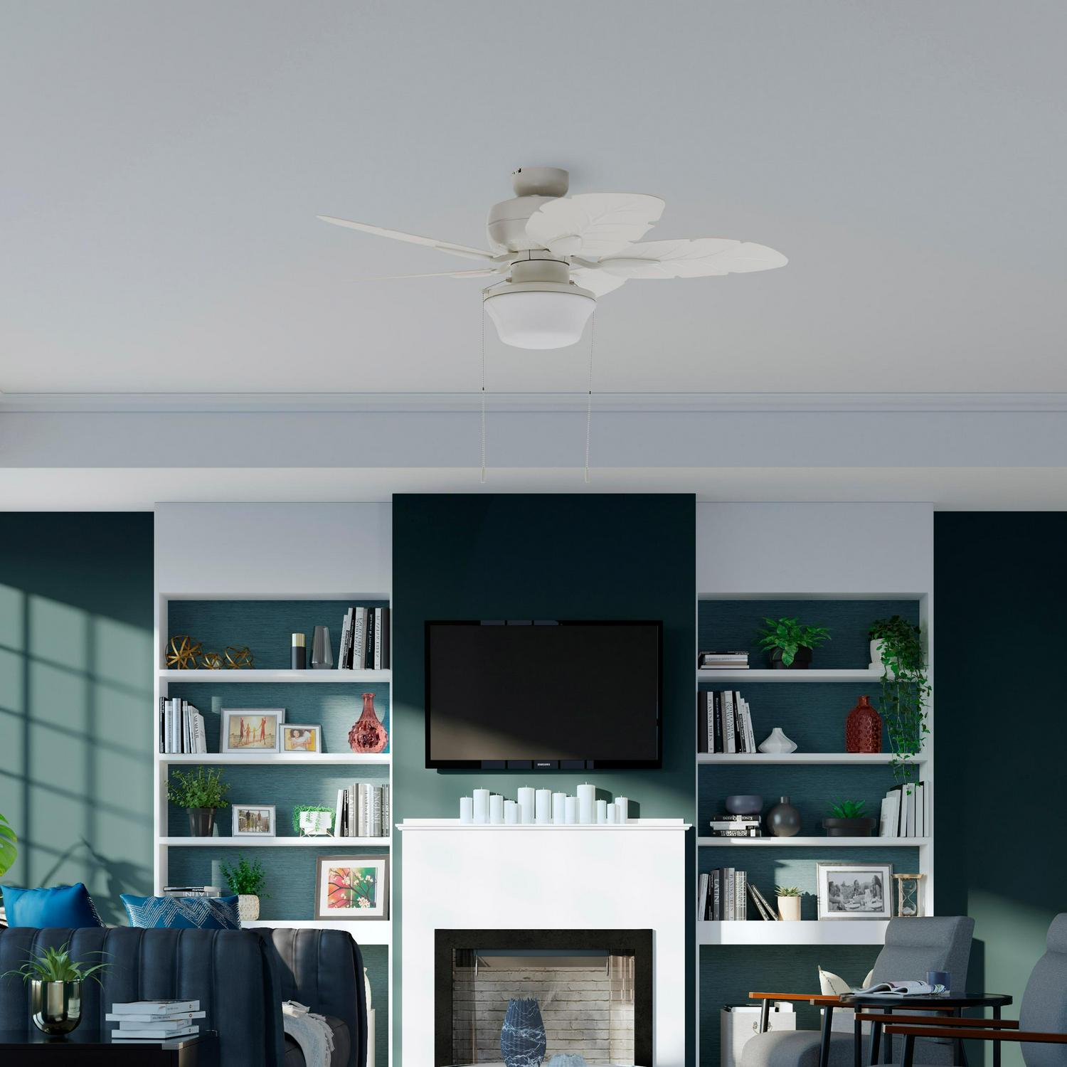 Harbor Breeze Waveport 44-in White Indoor/Outdoor Downrod or Flush Mount Ceiling Fan with Light (5-Blade)