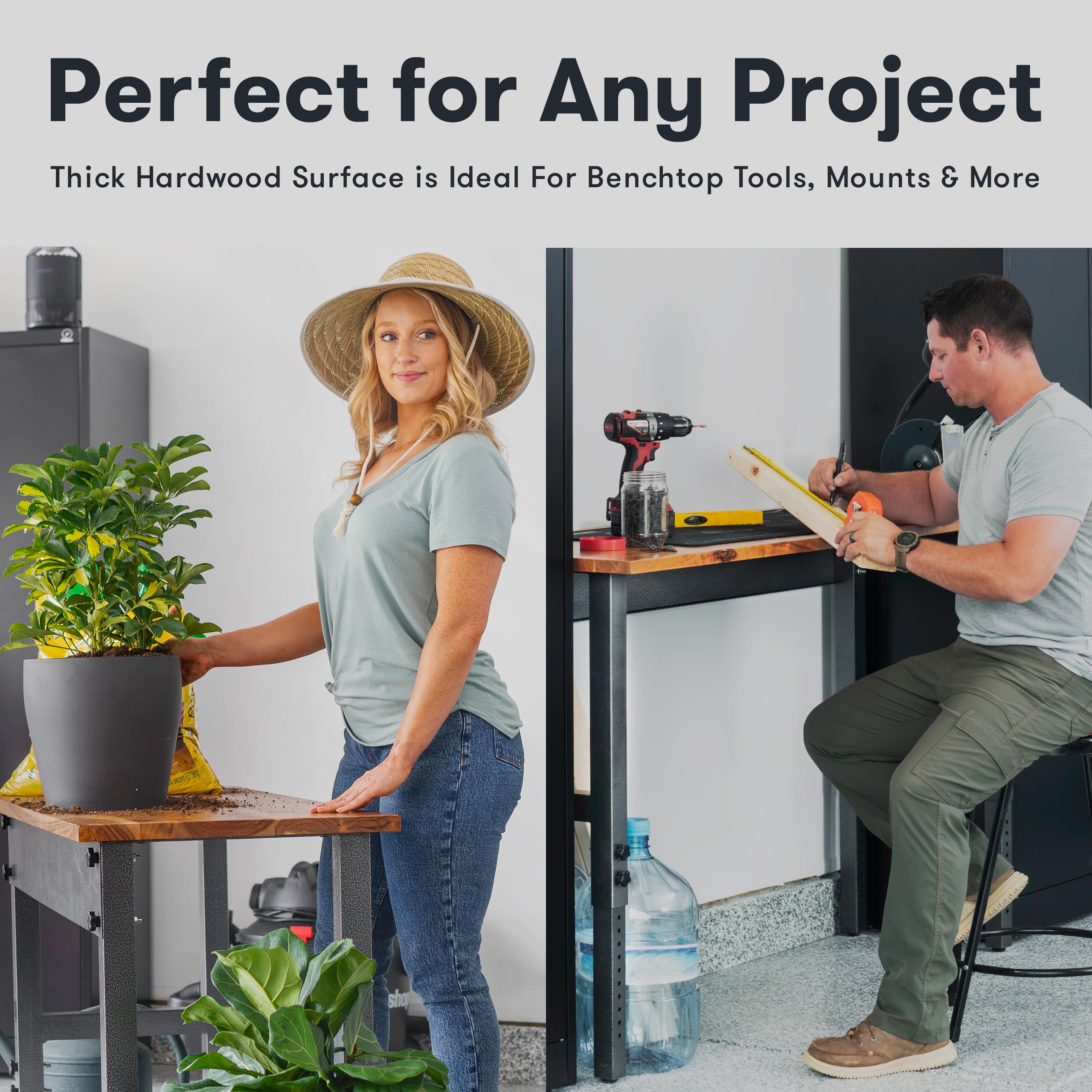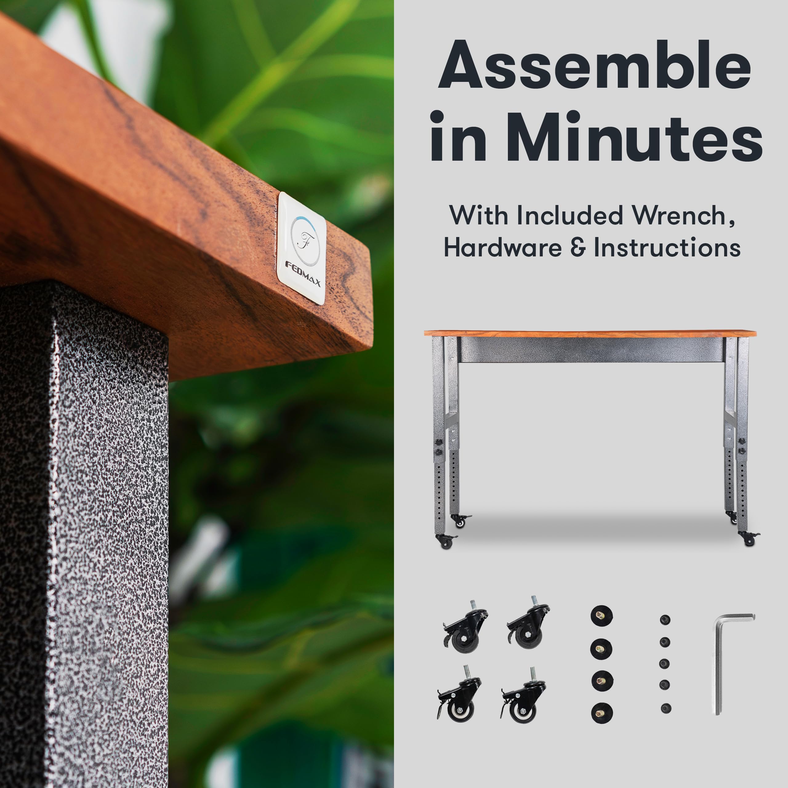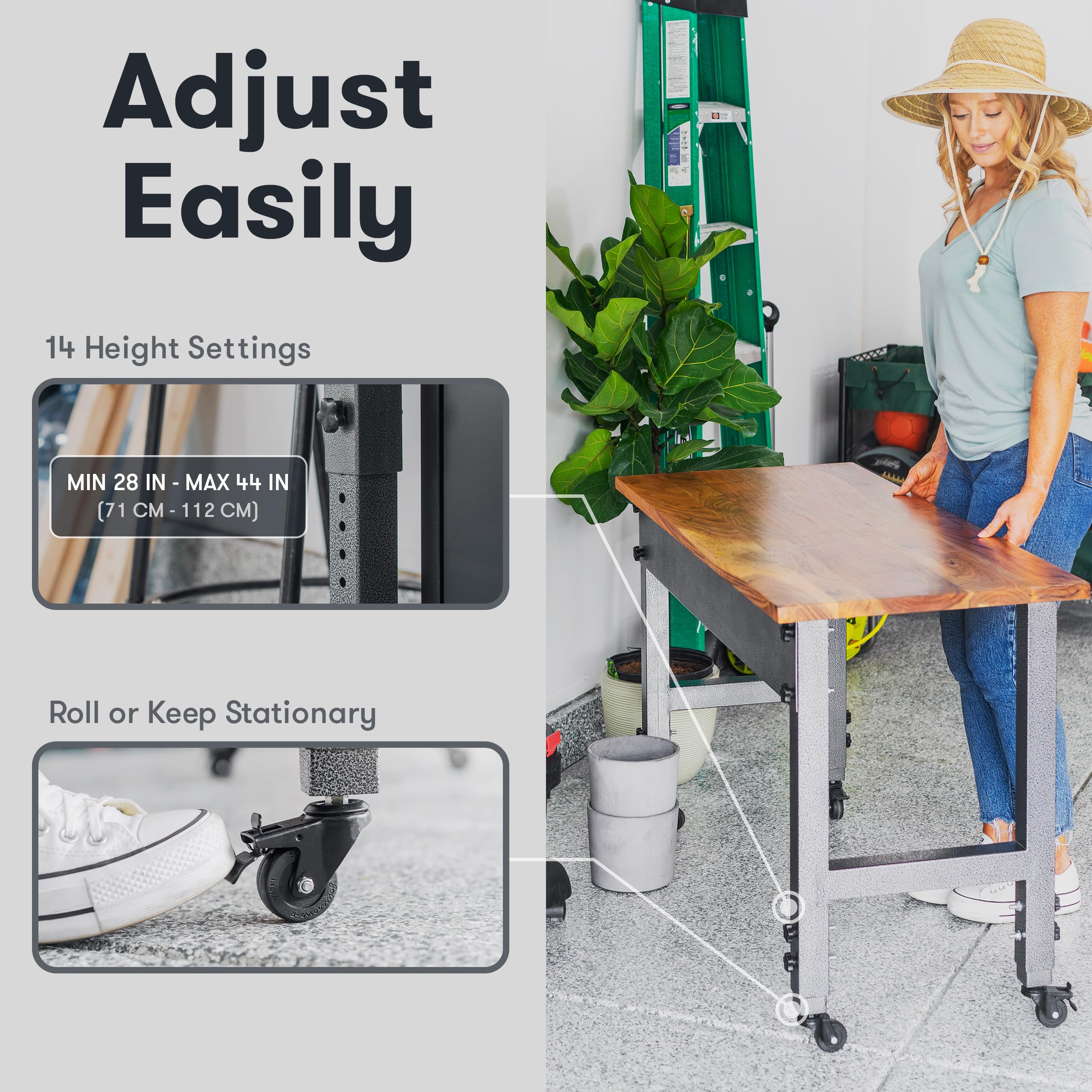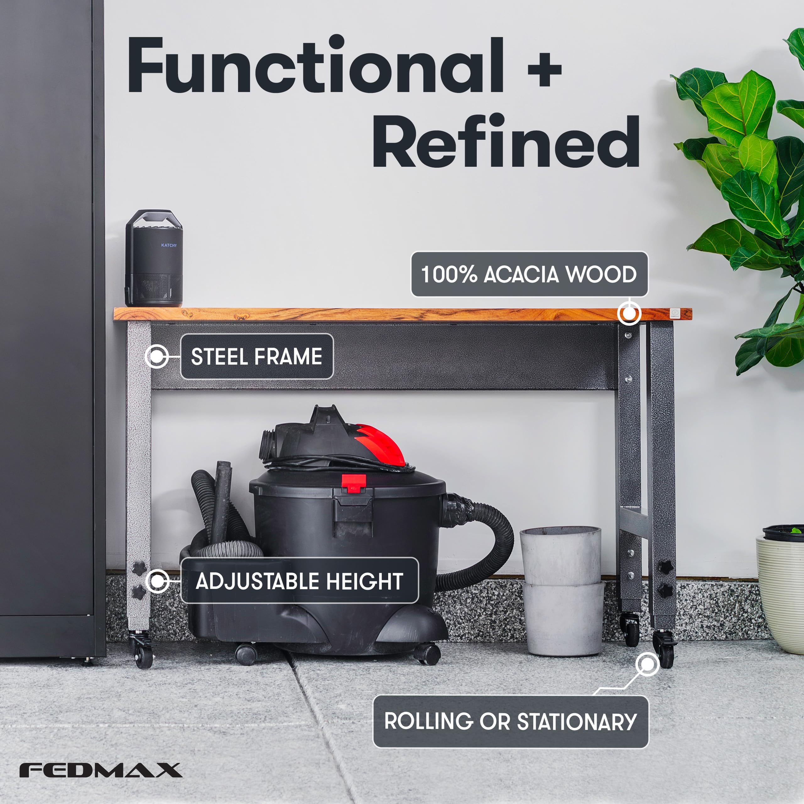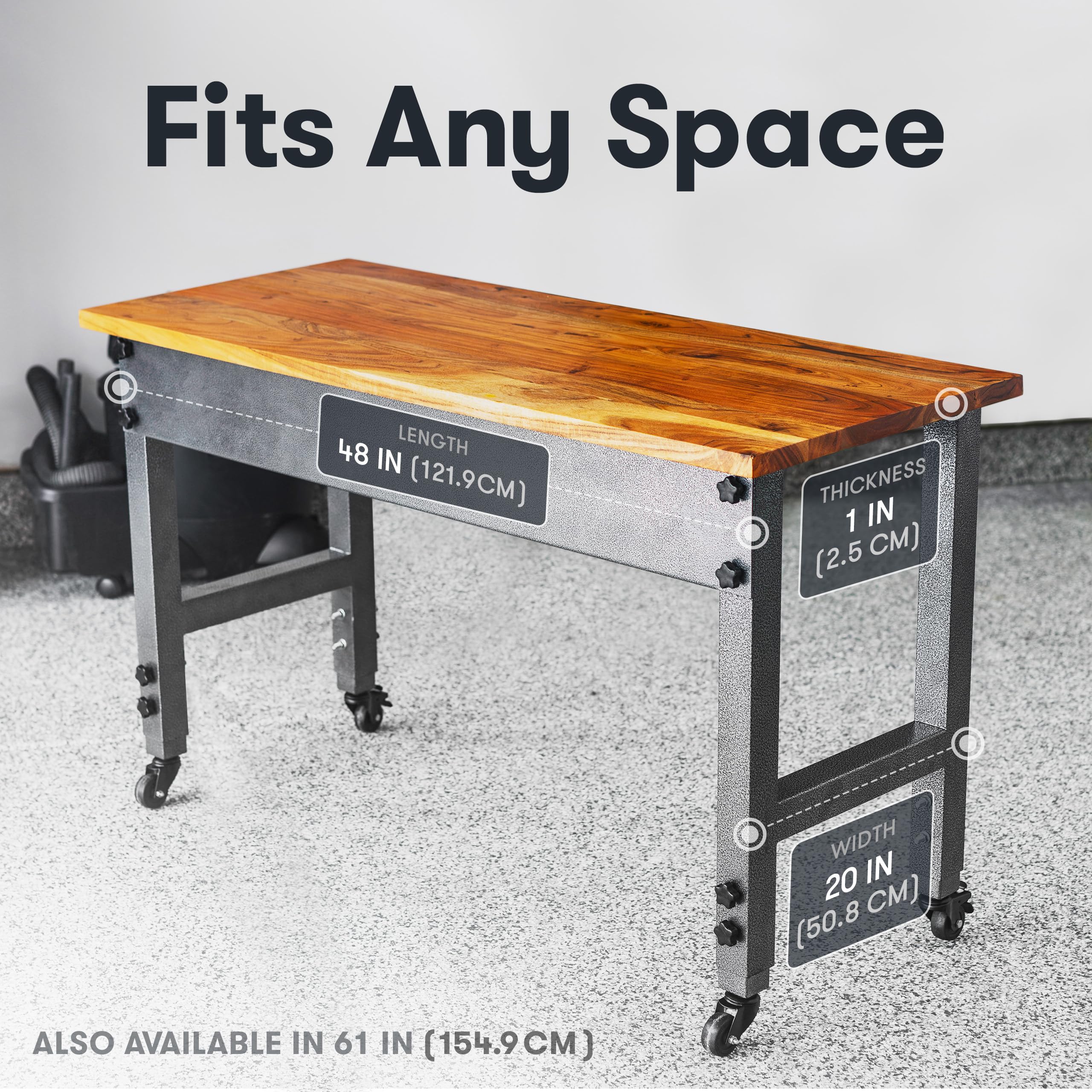 Fedmax Work Bench 61 Rolling Portable Workbench for Garage Metal with Acacia Hardwood Top, Adjustable Legs
