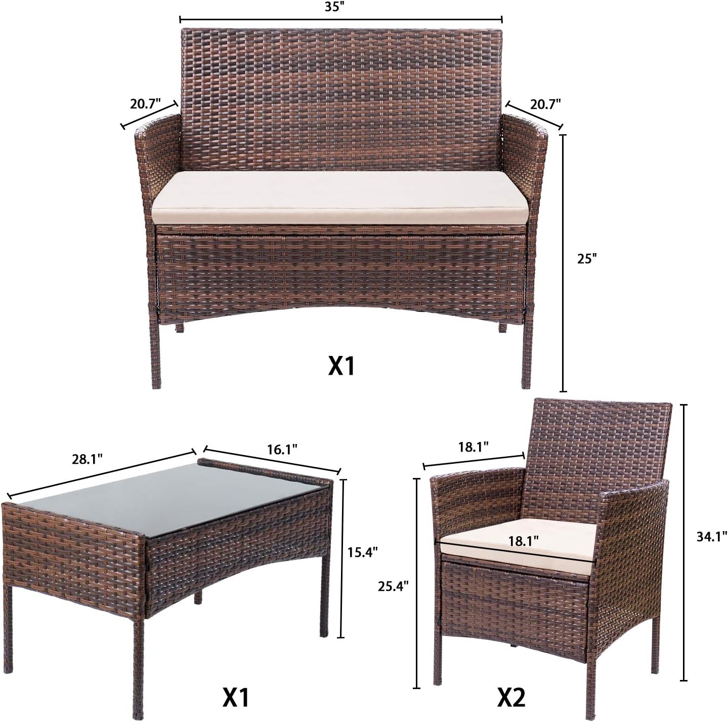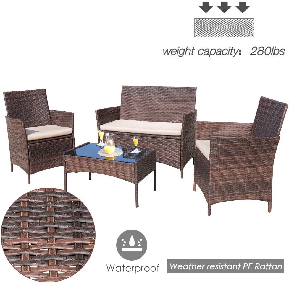 Homall Outdoor Indoor Use Backyard Porch Garden Poolside Balcony Sets Clearance Brown and Beige 4 Pieces Furniture