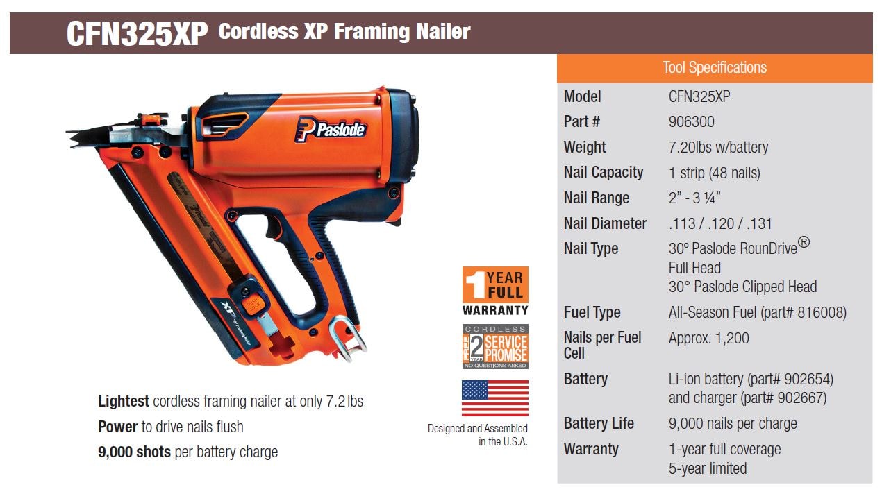 Paslode CFN325XP 3.25-in 30-Degree Cordless Framing Nailer (Battery Charger Included)