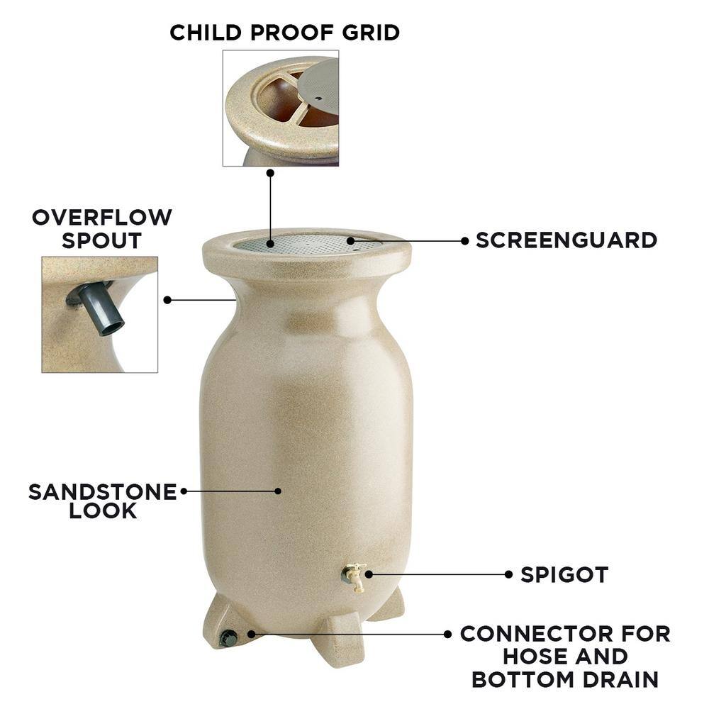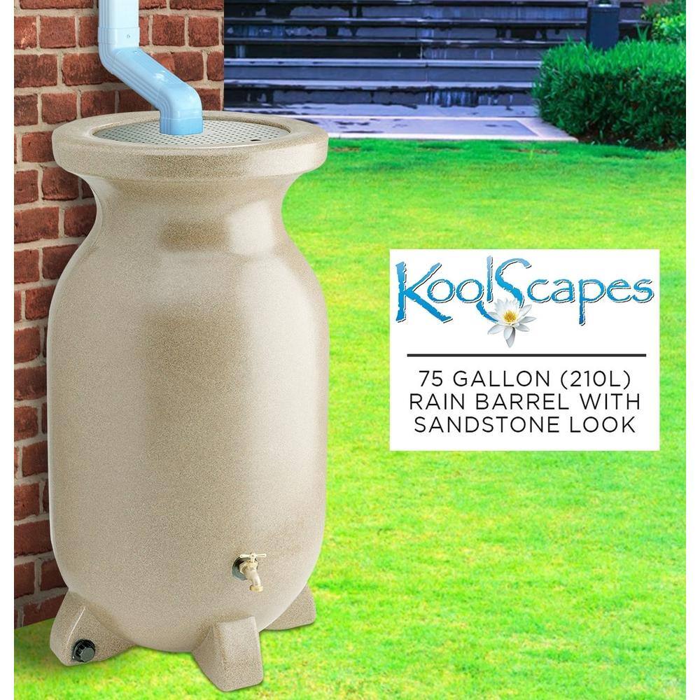 Koolatron RBSS-75 Koolscapes Stone-Look Rain Barrel 75 Gal. (285L) Beige, Eco-Friendly Gardening, Water Conservation