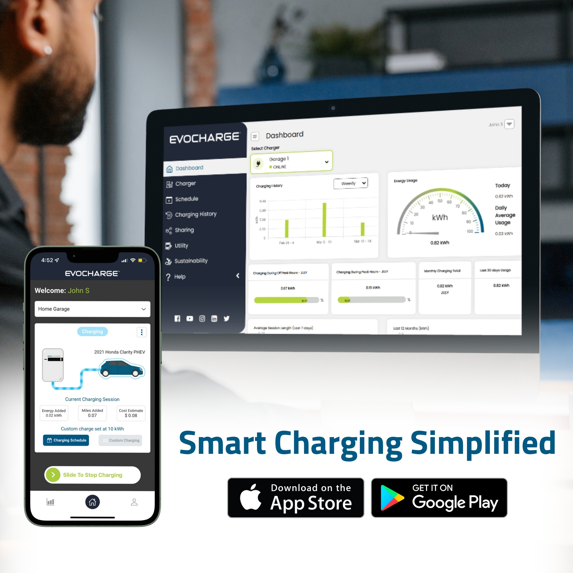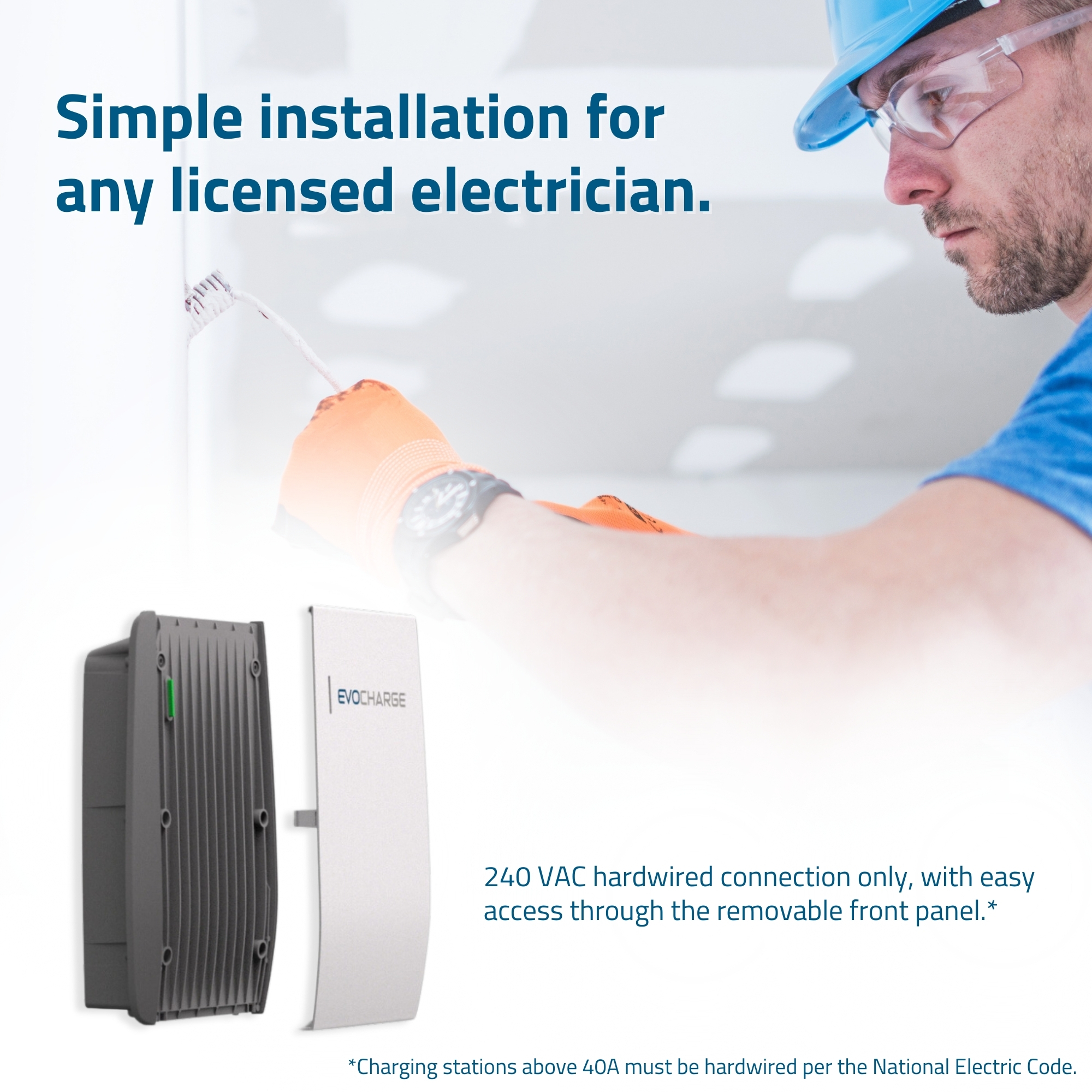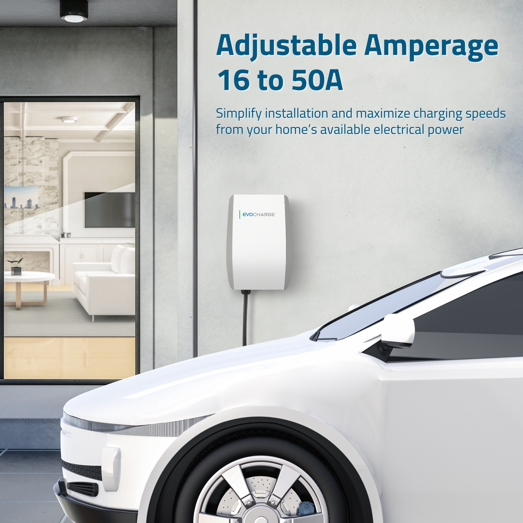 EvoCharge Home 50 Level 2 EV Charger up to 50 Amp, Smart WiFi and Bluetooth Enabled, 25 Foot Cable, 240V Hardwired, UL Listed, Up to 45 Miles Per Hour Charged
