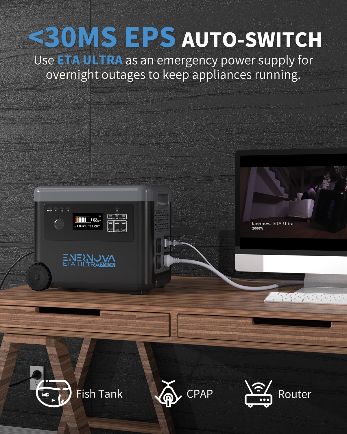 Enernova 2000W 2160Wh Power Station (Rated 2500W), LiFePO4 Battery EPS Backup Power Supply, 1.8H to Full Charge, Portable Solar Generator for Home Off Gird Camping RVs Emergency